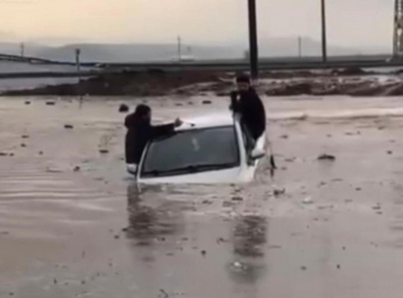 Şırnak’ın Silopi ilçesinde, Habur Sınır Kapısı yakınında bulunan Şırnak Valiliği Tır Parkı karşısındaki çevre yolu girişinde, sağanak yağışın ardından oluşan yoğun su birikintisi nedeniyle otomobil yolda kaldı. Araçta bulunan iki kişi, kendi imkânlarıyla çıkamayınca yardım beklemek zorunda kaldı.
