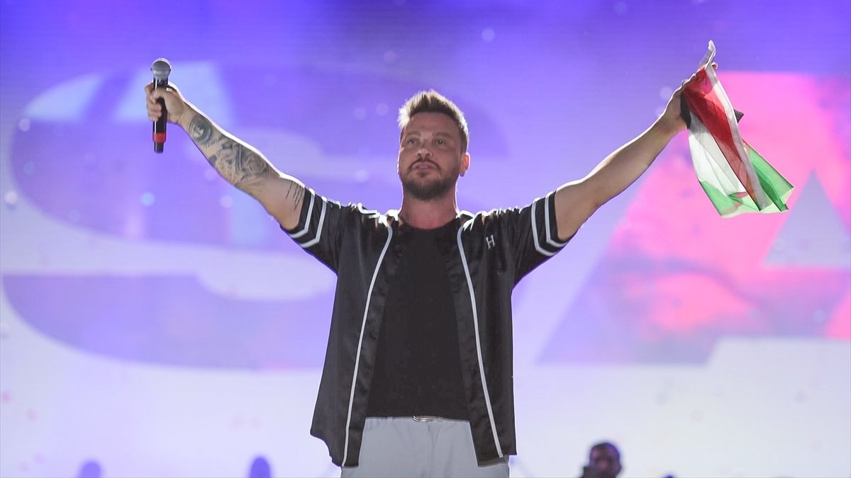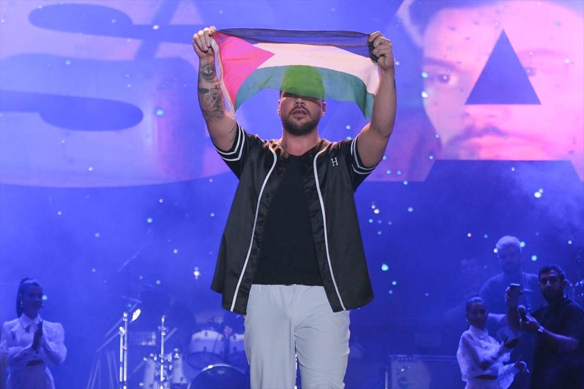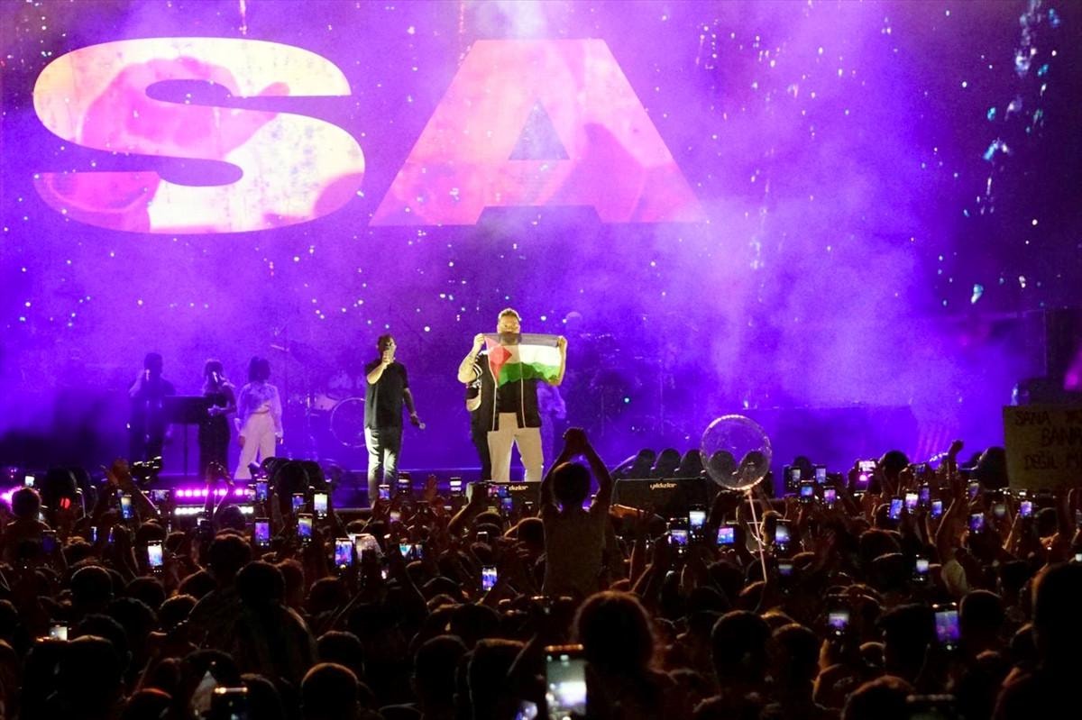 Şanlıurfa'daki Türkiye Kültür Yolu Festivali kapsamında düzenlenen konserde ünlü şarkıcı Sinan Akçıl, Filistin'e destek verdi.