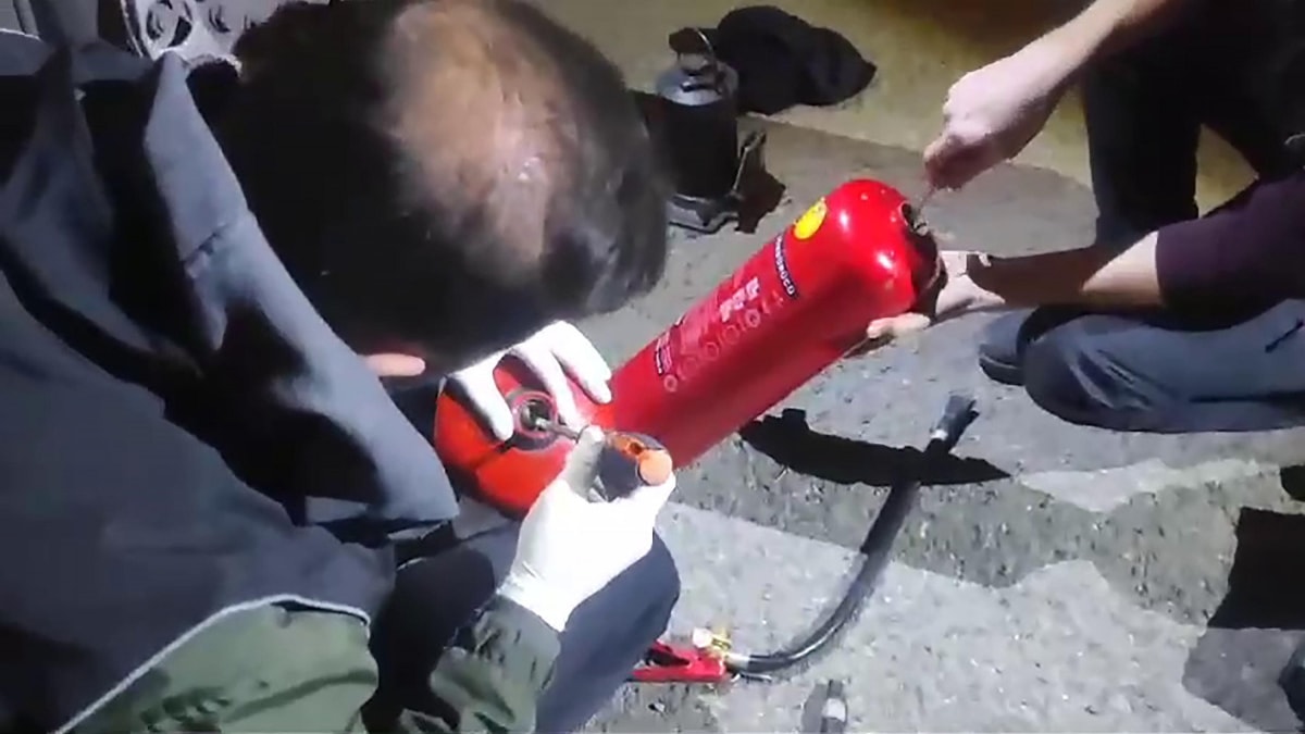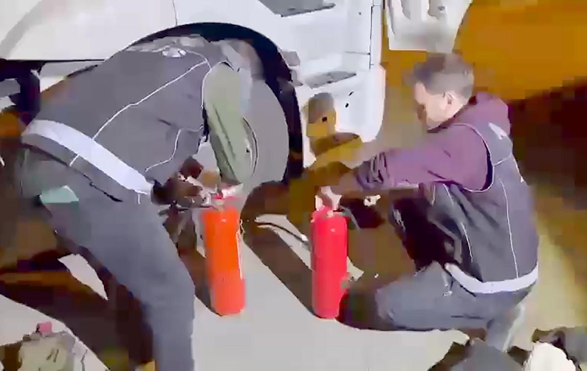 Ekiplerin kestiği yangın tüplerinden 11 kilo 150 gram eroin çıktı. TIR'ın sürücüsü H.E., gözaltına alındı.
