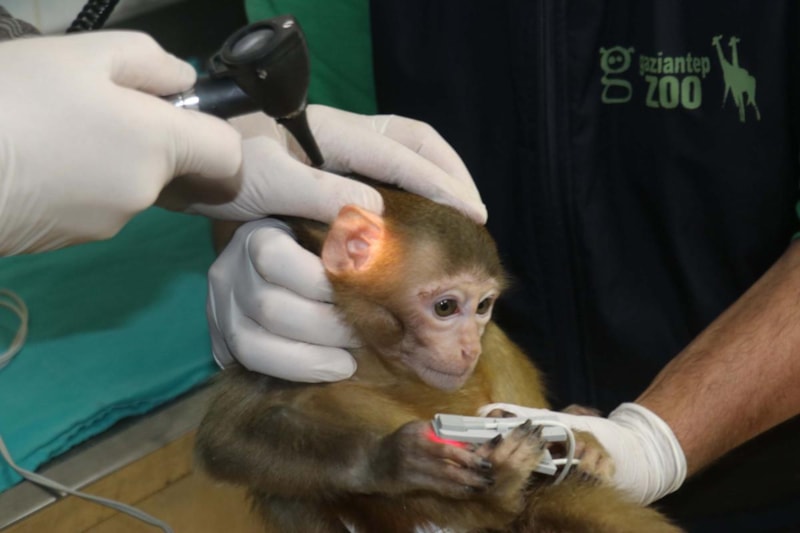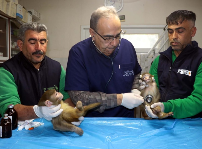 Şırnak'ta Habur Sınır Kapısı’nda ele geçirilen 2 makak maymunu, Gaziantep Hayvanat Bahçesi'ne getirildi.