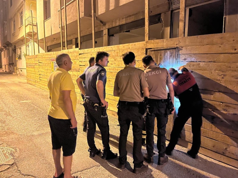 Kısa sürede olay yerine ulaşan ekipler, binanın kapısını açarak içeri girdi.