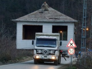 Sinop'ta bir vatandaş ahşap evi kamyonla taşıdı VİDEO