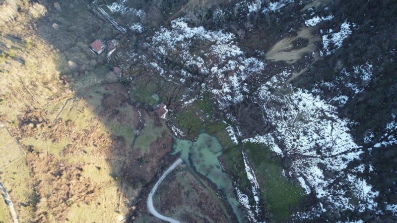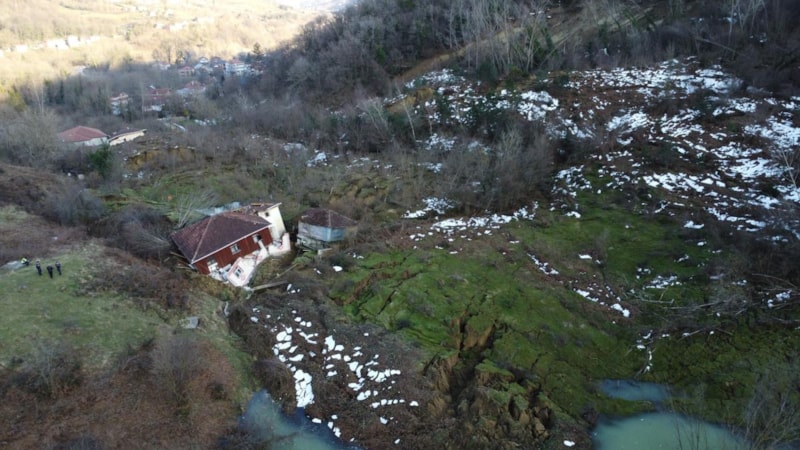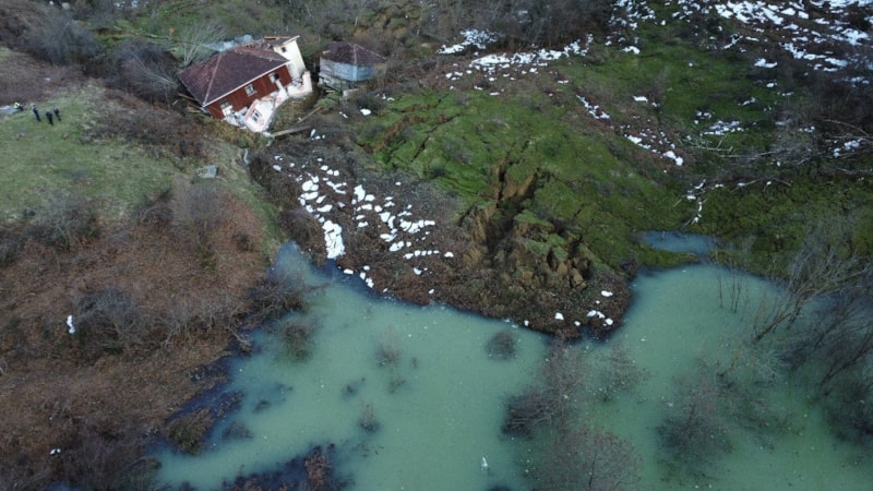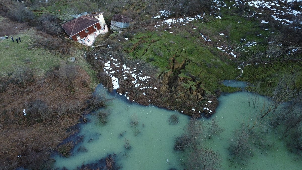 Bölge, dron ile havadan görüntülendi. Görüntülerde, dev toprak kitlesinin kayarak evleri sürüklediği ve büyük bir alanın zarar gördüğü açıkça gözler önüne serildi.
