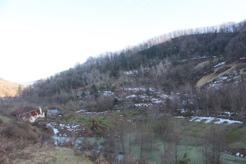 Karların erimesiyle kayan dev toprak parçası, 3 ev ve 1 ahırı önüne katarak sürükledi.