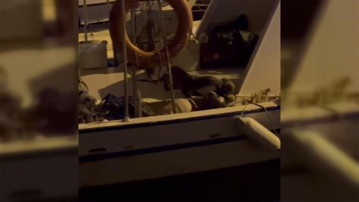 Şehir merkezi balıkçı teknelerinin bulunduğu mevkide görüntülenen su samuru balıkçı teknesinde yiyecek aradıktan sonra denize daldı.