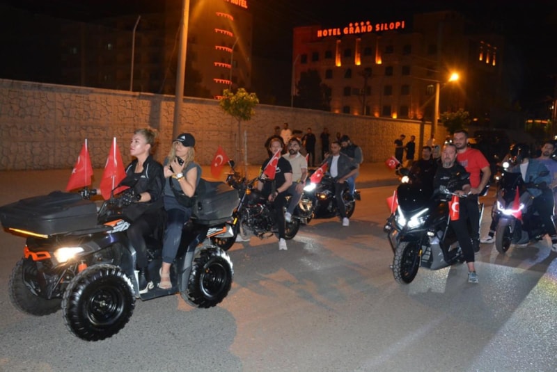 Motosiklet kortejinin de eşlik ettiği fener alayında öğrenciler bando etkinliği yaptı. Polis araçlarının siren çaldığı yürüyüşte 300 metrelik Türk bayrağı açıldı. Yürüyüşün en önünde yer alan Silopi Kaymakamı Cihat Koç ve 172’nci Zırhlı Tugay komutanı Osman Akyıldız, 300 metrelik bayrağı yürüyüş boyunca bırakmadı. Yaklaşık 1,5 kilometre yapılan yürüyüş, Silopi Koç İlkokulu bahçesinde tamamlandı. Havai fişek gösterisinin ardından yöresel sanatçıların verdiği konser ile bayram coşkusu yaşandı.