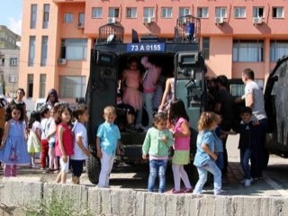 Araçlara bindirilen minikler TOMA'dan tazyikli su sıktı, anonslar yaparak eğlendi. Minik öğrenciler etkinliğin ardından Emniyet Müdürlüğü önünde hatıra fotoğrafı çektirdi.