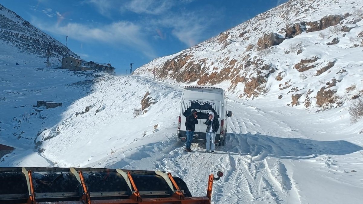İhbarın ardından bölgeye yönlendirilen Karayolları ekipleri, kapalı yolu açmak için karla mücadele çalışması başlattı. Zorlu hava ve yol koşullarına rağmen ekipler, yaklaşık 3 saat süren çalışmaların ardından minibüse ulaştı.