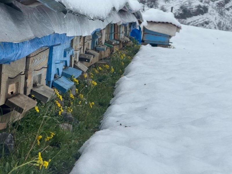 Ancak bölgede yalancı bahar hayatı felç etti. 3 gündür aralıksız bir şekilde devam eden kar yağışı, bal arılarının doğal dengesini bozdu.