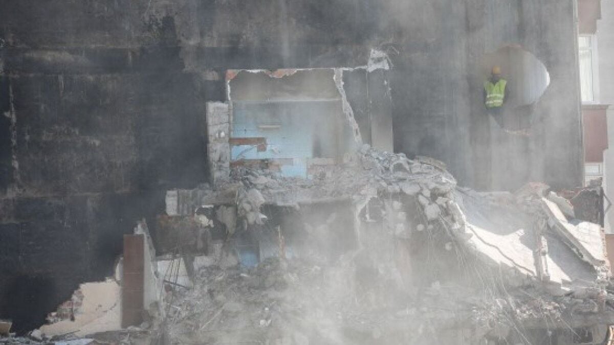 Binada oturan adının açıklanmasını istemeyen kişi, "Burada üç tane bina vardı, 'kolonlarda çatlak oldu' dediler. Operatör, 'vurayım indireyim' dedi, işte böyle oldu. Binadan kimse dışarı çıkmadı. Herkes evinde oturuyor. Orası kızımın yatak odası, komple içeri çökmüş. Ukrayna'yı yaşıyoruz burada" diye konuştu.