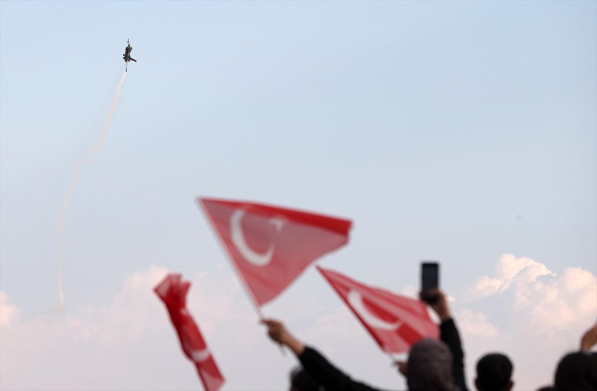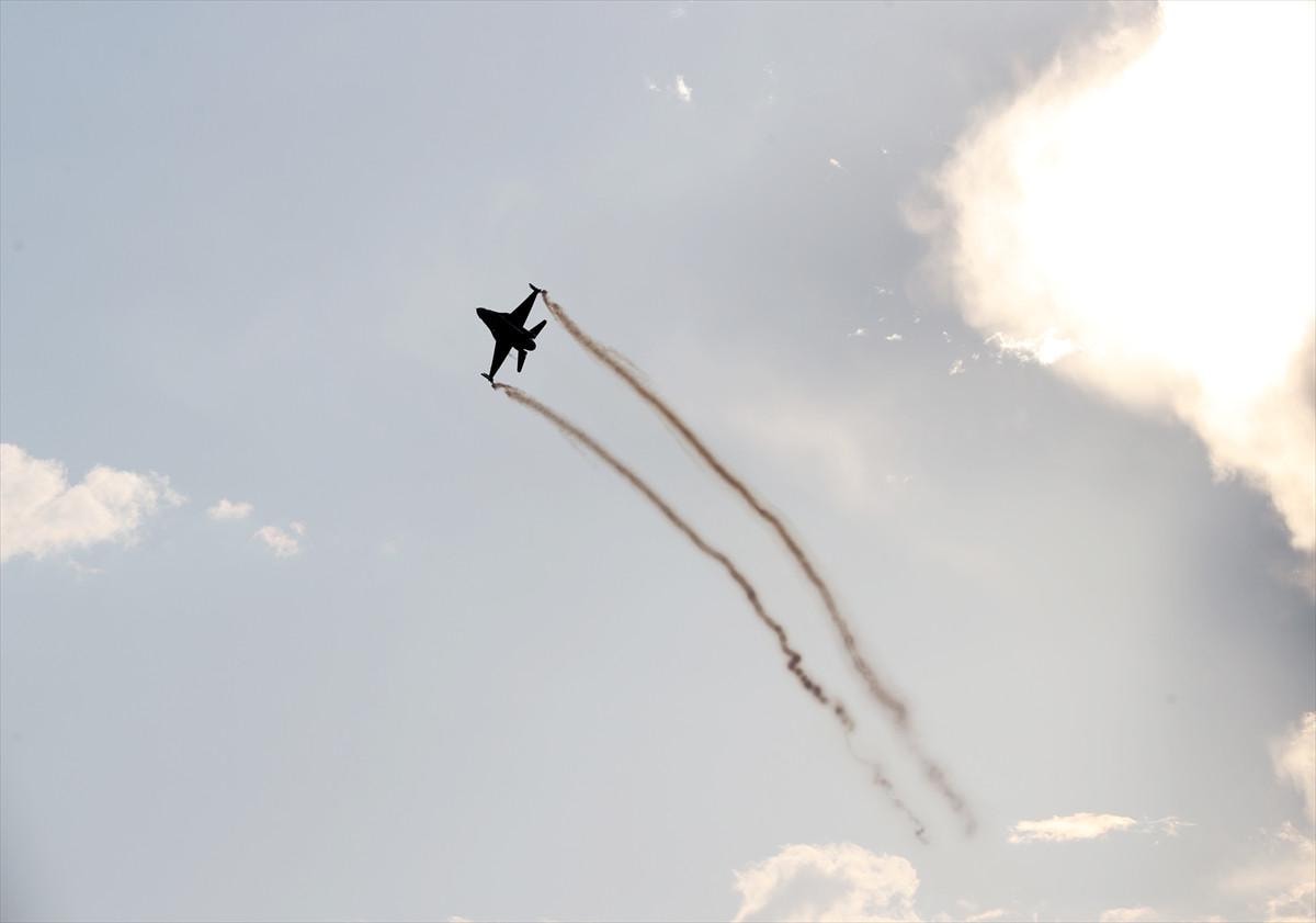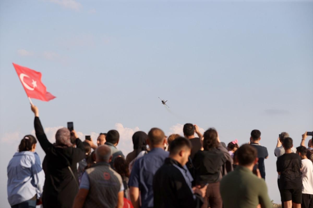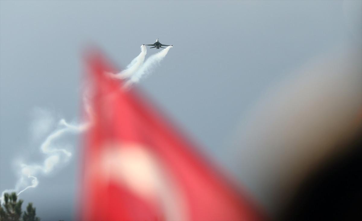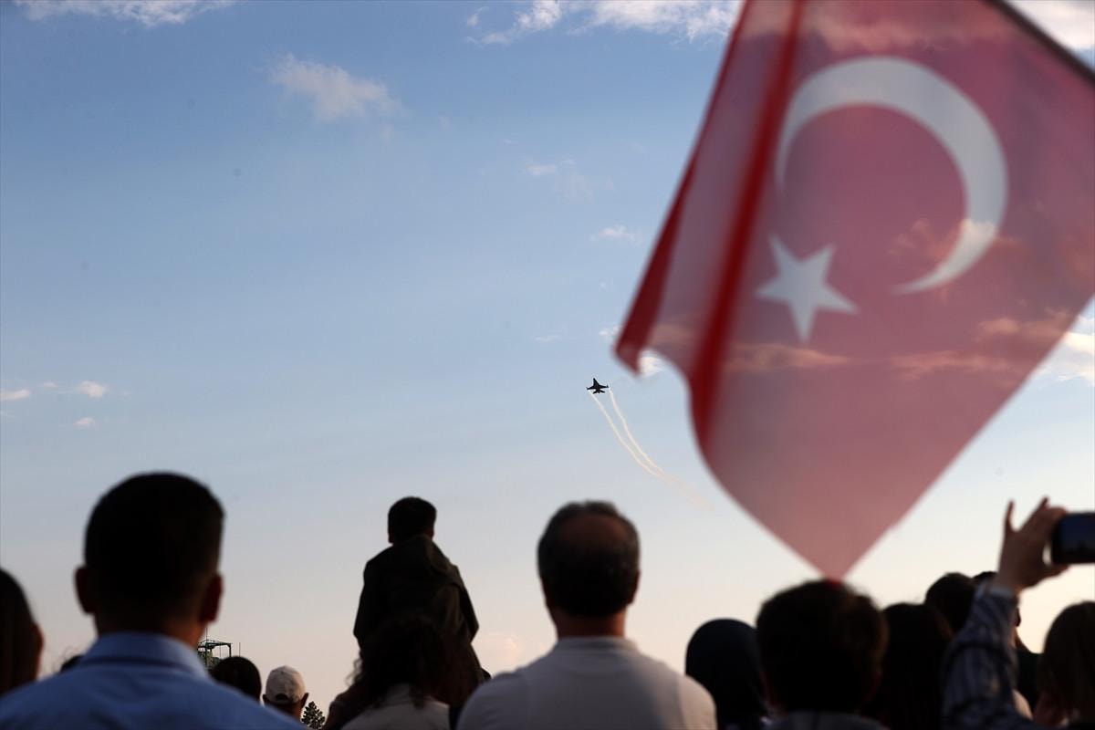 SOLOTÜRK pilotlarının gökyüzünde sergilediği zorlu manevralar izleyenlere adeta görsel bir şölen sundu.