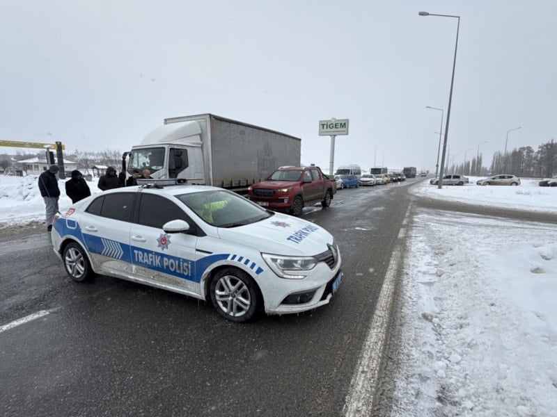 Olumsuz hava koşulları nedeniyle trafik ekipleri, güvenlik amacıyla Ulaş ilçesi girişinde önlem alarak araç geçişine izin vermiyor. Sürücüler yolun açılmasını bekliyor.