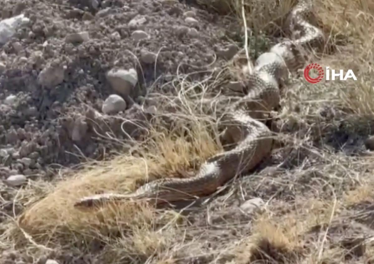 Sivas'ın Gürün ilçesine bağlı Dümerpınar köyünde hayvancılıkla uğraşan Yunus Ardıç, kardeşiyle birlikte merada sürüsünü otlatırken dev bir yılanla karşılaştı.