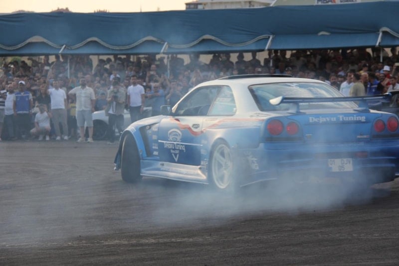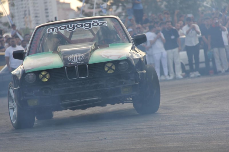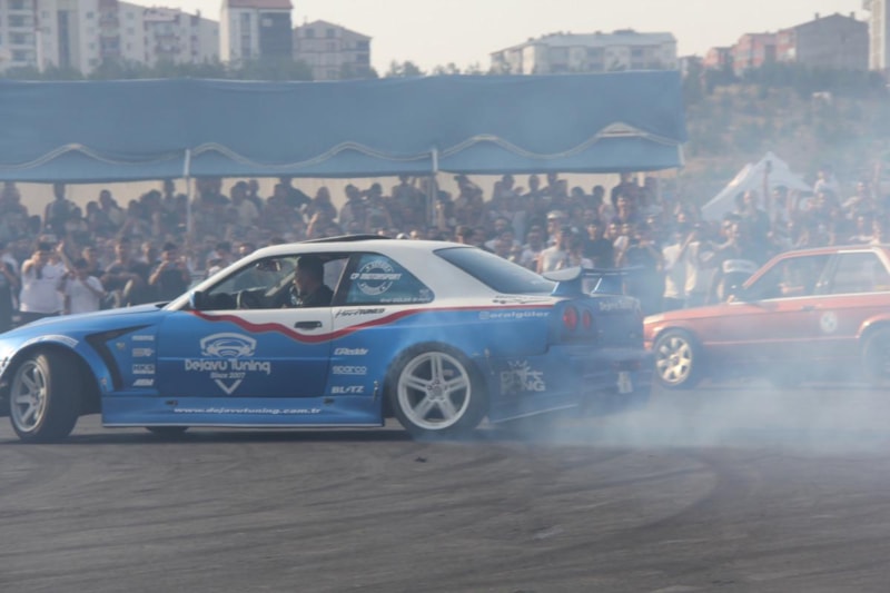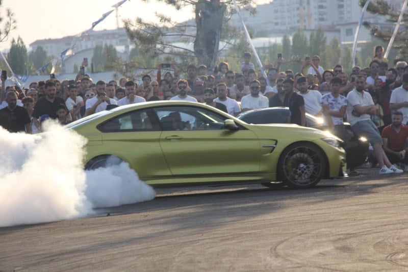 Uzun'un konuşmasının ardından sürücüler alanda drift atarak lastik yaktı. Lastik dumanı alanı kaplarken, o anlar havadan da görüntülendi.