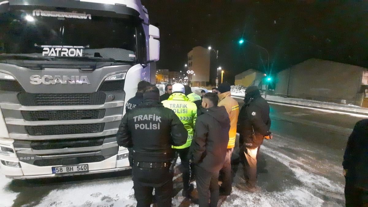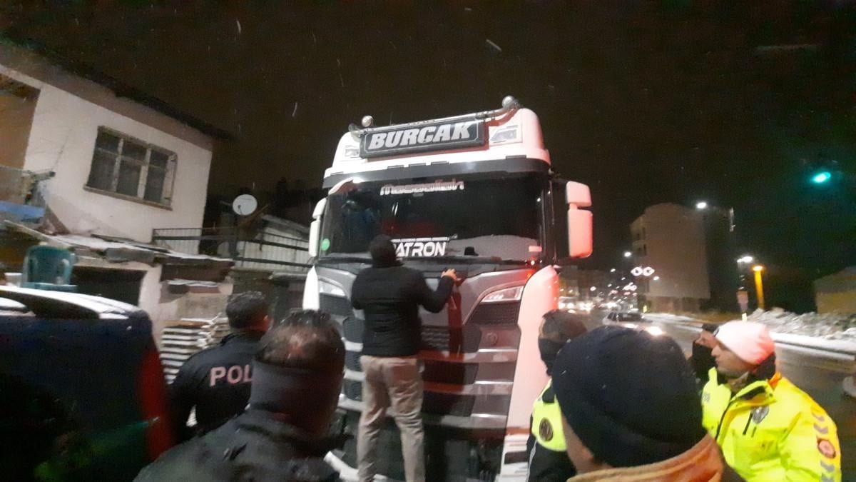 Sivas'ta 58 BH 540 plakalı tır sürücüsü Ö.K., polis ekiplerinin dur ihtarına uymayıp aracı polislerin üzerine sürdü.