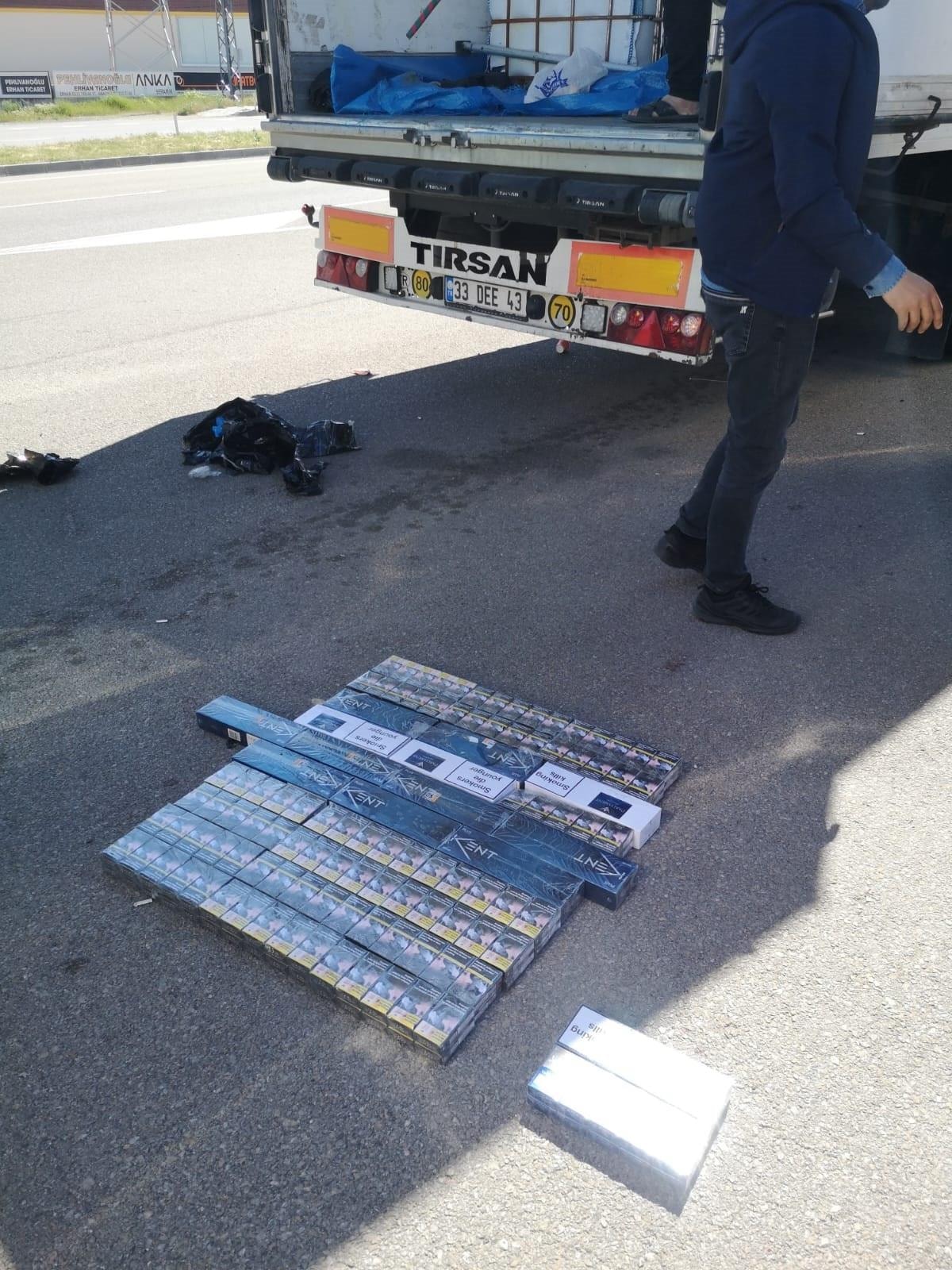 Tırlarda ayrıca çok sayıda kaçak sigara ele geçirildi.