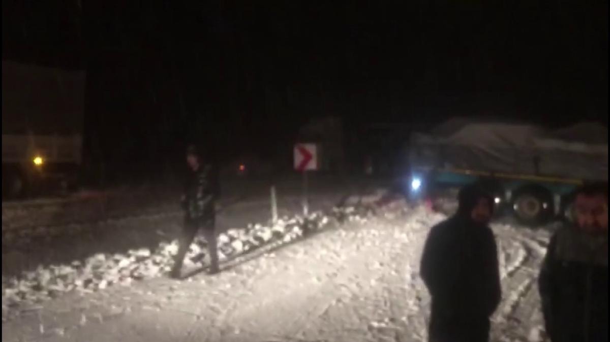 Tırların makas attığı geçitte Kayseri istikameti kısmen trafiğe kapandı.