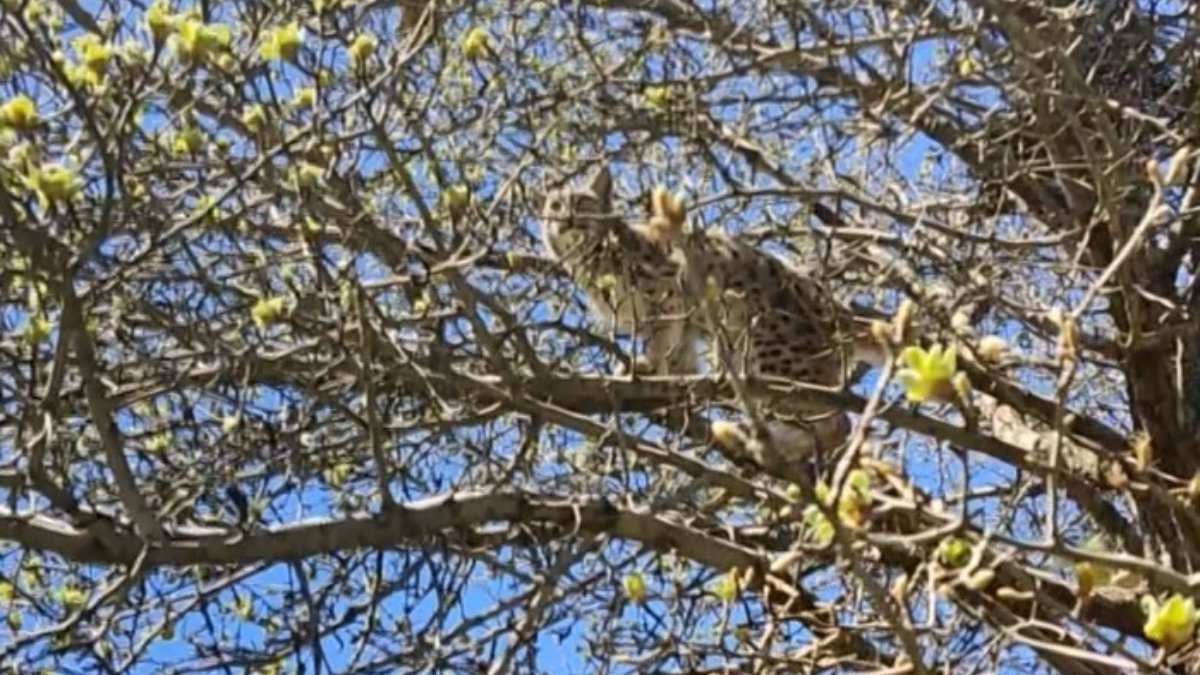 Köpeklerden kaçan vaşak, ağaca tırmandı
