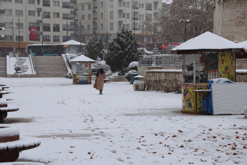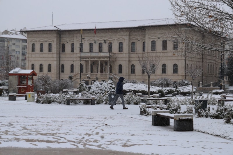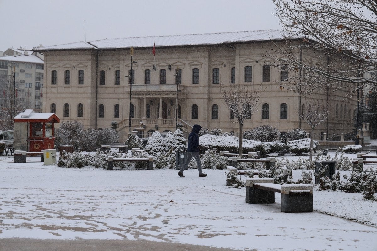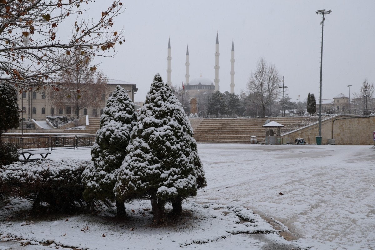 İçerisinde Selçuklu, Osmanlı ve Cumhuriyet dönemi yapılarını barındıran Tarihi Kent Meydanı, yağan kar ile birlikte eşsiz görüntüler oluşturdu.