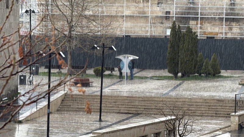 Hava sıcaklığının 16 derece olduğu kentte etkisini gösteren kuvvetli yağmur, hayatı durma noktasına getirdi.