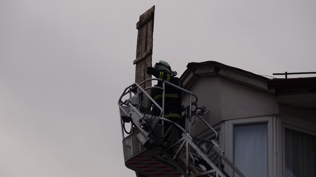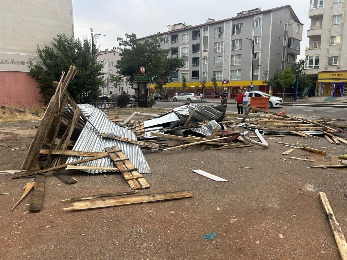Çatıdan kopan saç ve tahta parçaları park halindeki iki araca zarar verdi.