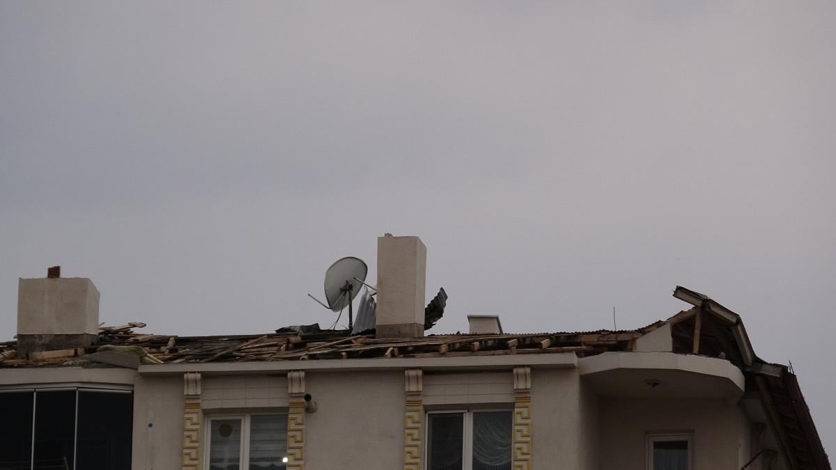 KUVVETLİ RÜZGAR SONRASI ÇATI UÇTU