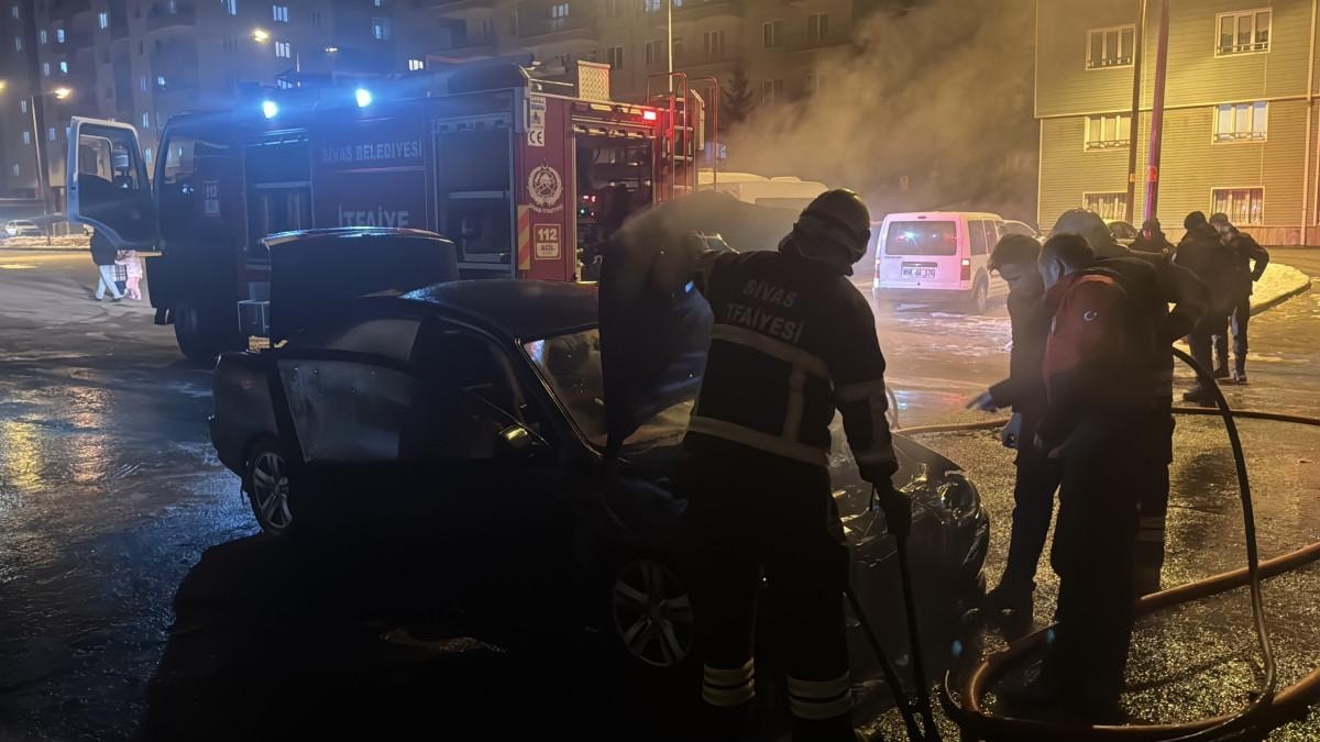 Yangın kısa sürede büyüdü. Aracın yandığını görenler durumu Sivas Belediyesi itfaiye ekiplerine haber verdi.