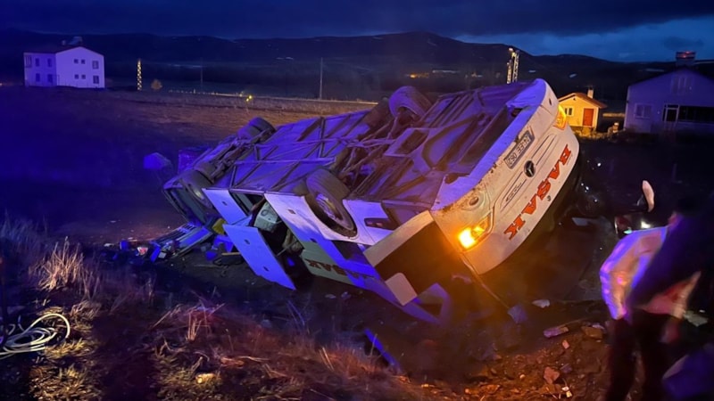 Yalova'dan Erzincan'a giden E.C. yönetimindeki 24 EE 062 plakalı Başak Turizm yolcu otobüsü Sivas-Erzincan kara yolu İmranlı ilçesi merkez girişinde devrildi.