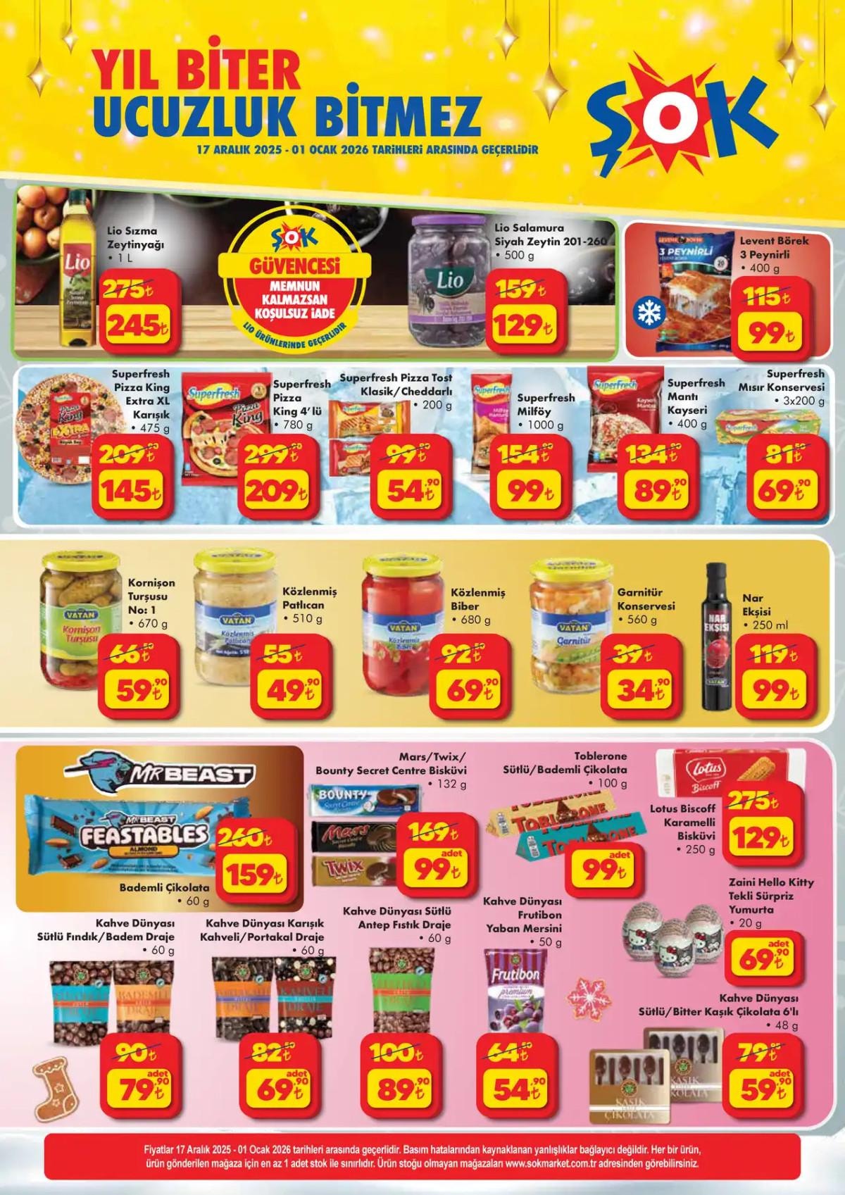 17 Aralık Çarşamba günü başlayacak ve 1 Ocak Perşembe gününe kadar geçerli olacak kampanya kapsamında, mağazalarda ve ŞOK’un resmi internet sitesinde çok sayıda ürün tüketicilerle buluşacak.