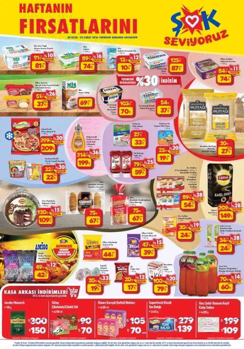 ŞOK, yeni haftaya avantajlı fiyatlarla giriyor. 28 Ocak–3 Şubat tarihleri arasında geçerli olacak aktüel katalogta ev elektroniğinden mutfak ürünlerine, kişisel bakım eşyalarından çocuklara yönelik ürünlere kadar birçok indirimli ürün tüketiciyle buluşuyor.