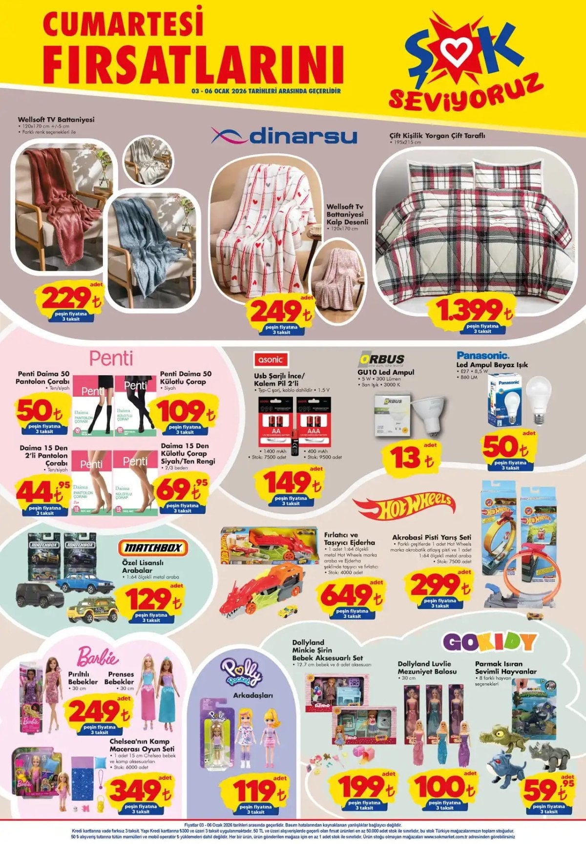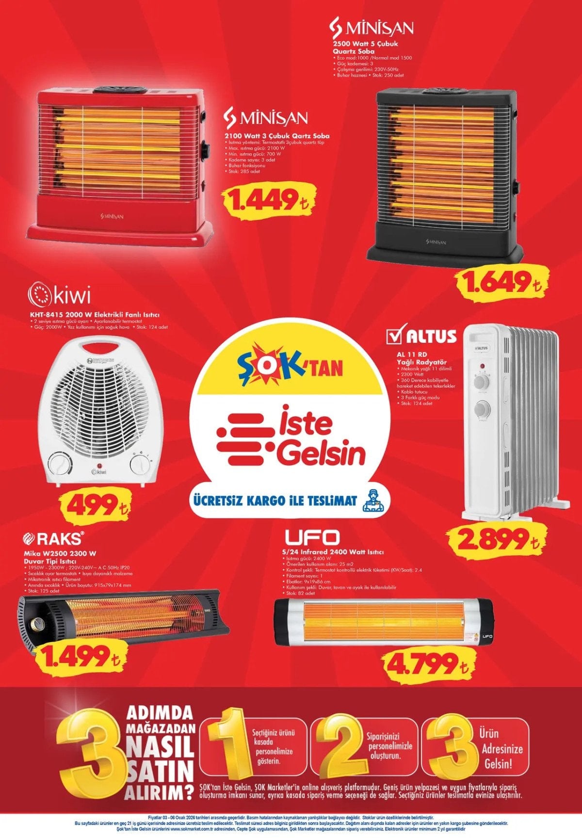 - ŞOK, 3 Ocak 2026 Cumartesi itibarıyla geçerli olacak hafta sonu kampanyasıyla ısıtıcı çeşitleri, elektronik ve ev tekstili ürünleri sunuyor.