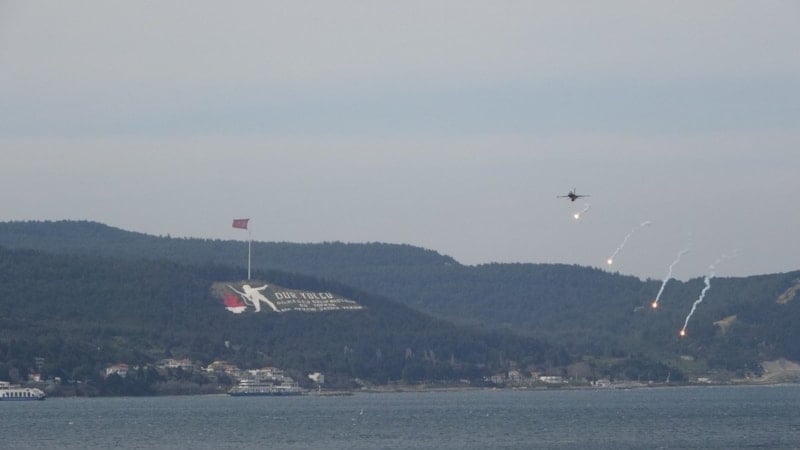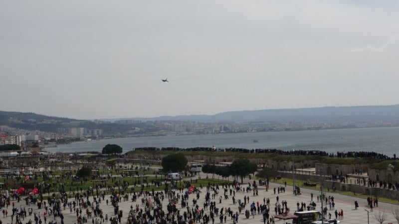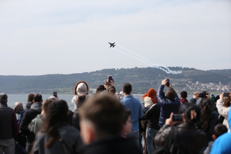 Türk Hava Kuvvetleri’nin gözde akrobasi timi SOLOTÜRK, 18 Mart Çanakkale Deniz Zaferi’nin yıl dönümünde Çanakkale semalarında görsel bir şölen sundu. Hamidiye Tabyası önünde gerçekleştirilen gösteri, vatandaşlardan yoğun ilgi gördü.