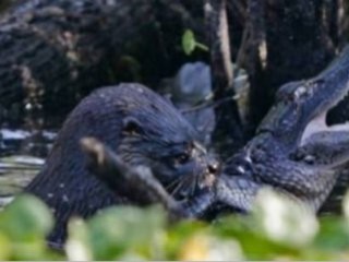 Bir su samurunun bir timsaha saldırması ilk kez kameralara yansırken sevimli olarak görünen su samuru uzun uğraşlar sonucu kendisinde büyük ve tehlikeli timsahi canlı canlı yemeye başladı.