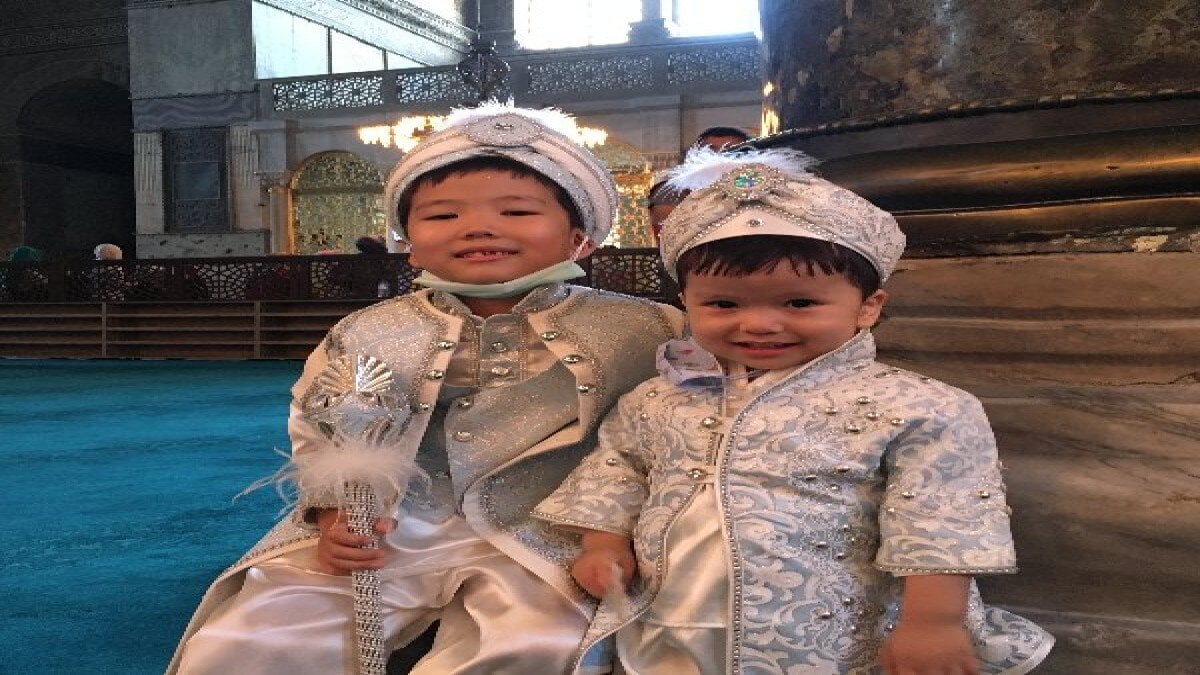 7 yaşındaki Mehmet Fatih Han Polat ve 2 yaşındaki İhsan Bedirhan Polat isimli çocuklar sünnet gezisi için babalarıyla birlikte geldikleri Ayasofya Camii'nde bol bol hatıra fotoğrafı çektirdi. Sünnet kıyafetleriyle cami içerisinde dolaşan iki minik kardeş ise turistlerin ilgi odağı oldu.