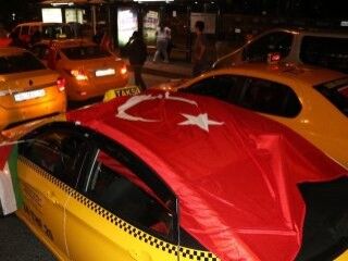 İstanbul'da Beşiktaş'ta Büyükdere Caddesi üzerinde dün geç saatlerde toplanan taksiciler, Türk bayrakları astıkları araçlarıyla konvoy oluşturup korna çalarak Beşiktaş’ta bulunan İsrail Konsolosluğu önüne doğru harekete geçti.