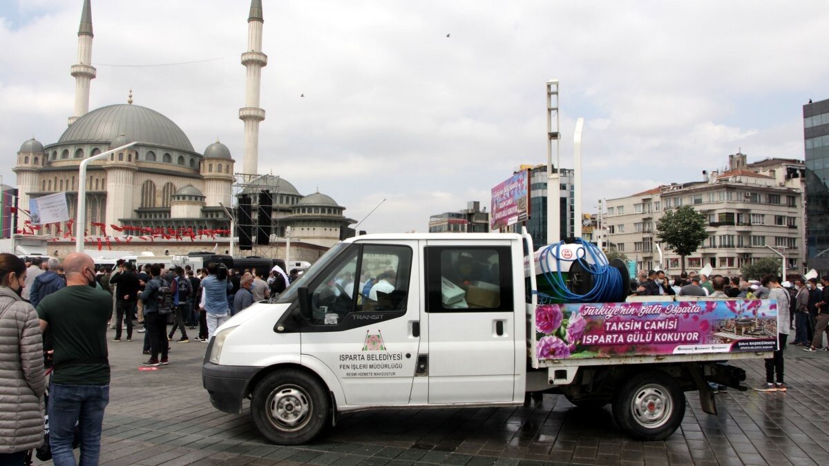 Isparta Belediyesi Başkan Yardımcısı Fahrettin Gözgün, "Isparta'dan geliyoruz. Belediye başkanımızın talimatıyla şu an Taksim Camii'nin açılışında Taksim Meydanı ve Taksim Camii'nin gül kokuları ile kokulandırılmasını sağlamak istedik. Bir Osmanlı geleneğidir. Camiler ibadete açılırken, muhakkak gül sularıyla yıkanırdı. Bizler de bugün Taksim Camii'nin açılışında yer almak istedik. Şu an ortam gül kokmaya başladı. Beyoğlu Belediyesi ile birlikte İstiklal Caddesi de dahil olmak üzere 25 ton gül suyu ile kokutmuş olacağız." dedi.