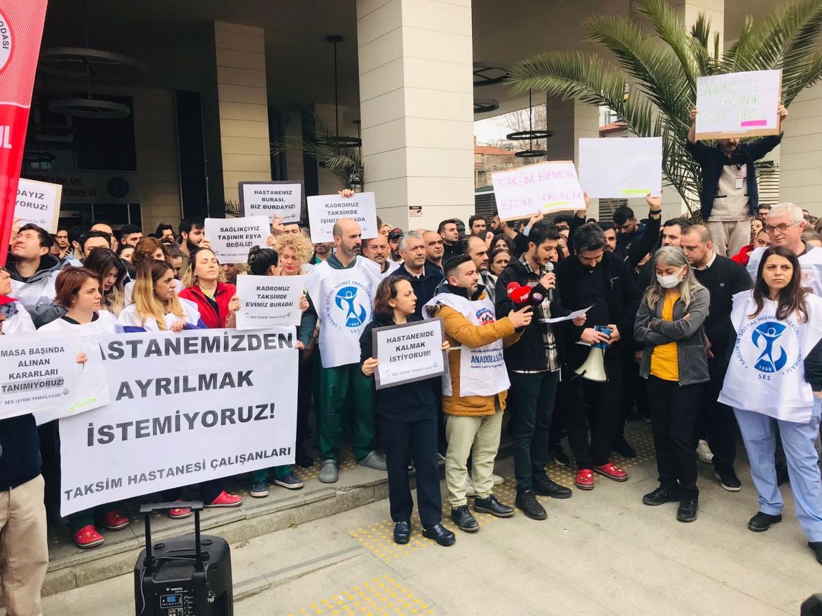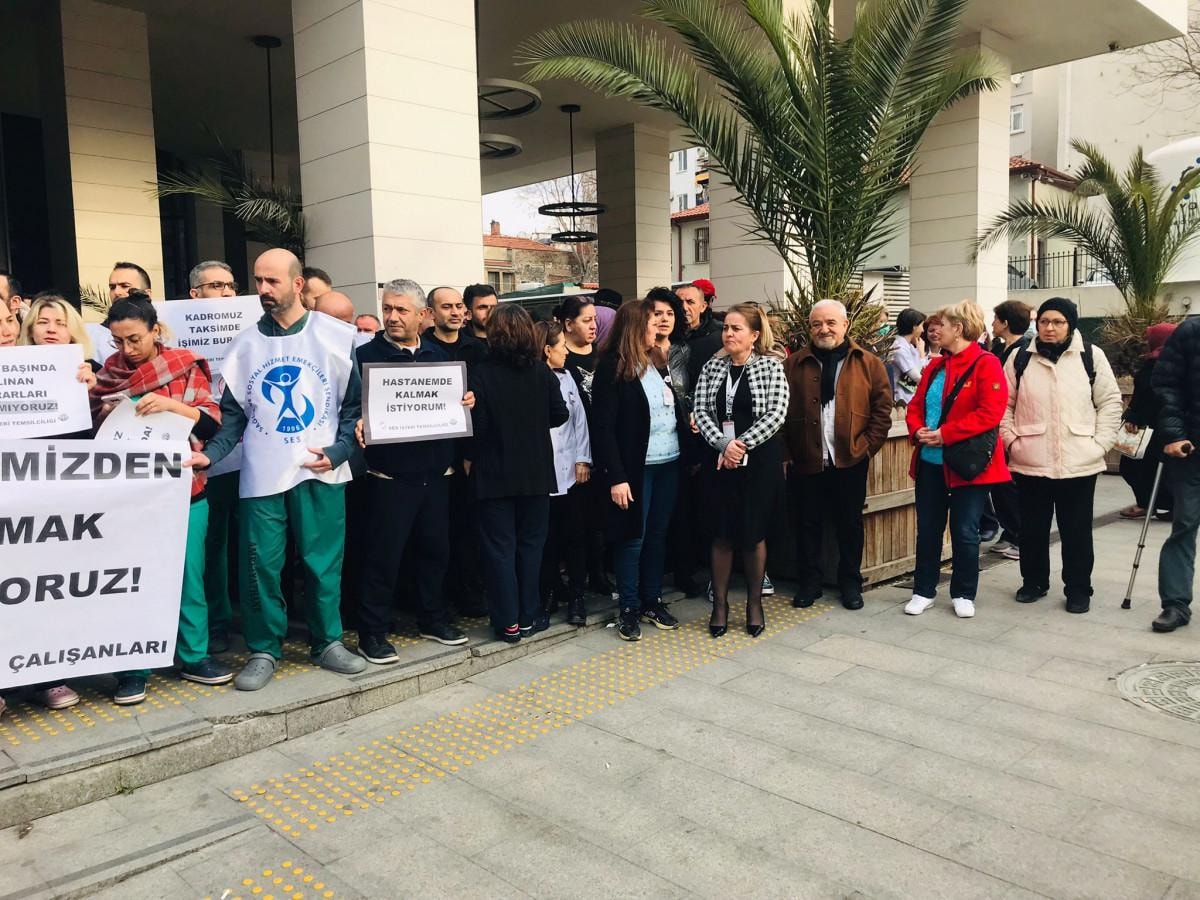 Hastanenin bazı çalışanların başka hastanelerde görevlendirileceği iddiası üzerine Sağlık ve Sosyal Hizmet Emekçileri Sendikası (SES) ile İstanbul Tabipler Birliği üyeleri protesto gösterisi düzenledi.