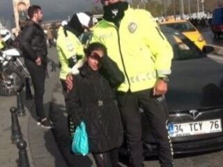 Taksim Meydanı’nda görev yapan bir trafik polisi, bölgede üzerinde mont olmadan mendil satan 10 yaşındaki İpek F. isimli Suriyeli küçük kızın üşüdüğünü fark etti.