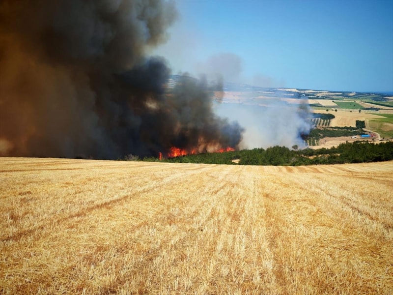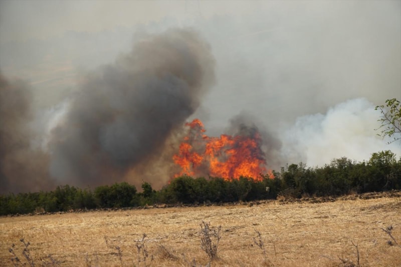 İstiklal Mahallesi Kaytan mevkiinde başlayan anız yangını, rüzgarın etkisiyle kısa sürede büyüyerek ormanlık alana sıçradı.