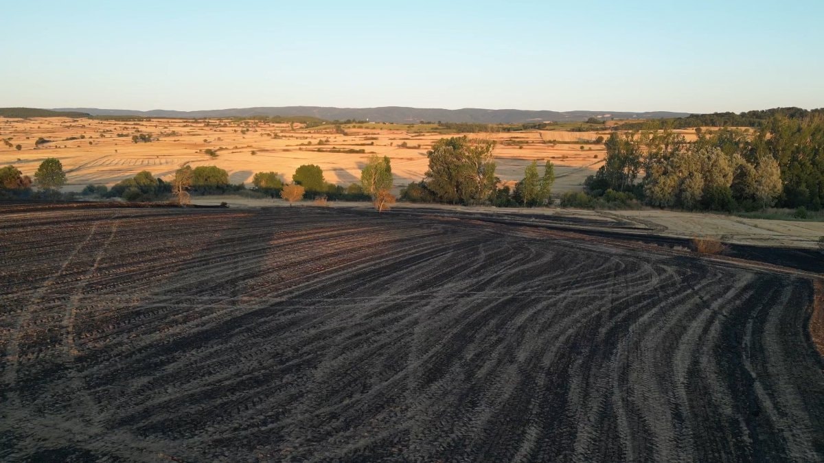 Tekirdağ'da henüz belirlenemeyen bir sebeple Sağlamtaş Mahallesi'nde başlayan yangın, biçilmiş buğday anızlarının bulunduğu tarlada etkisini gösterdi.