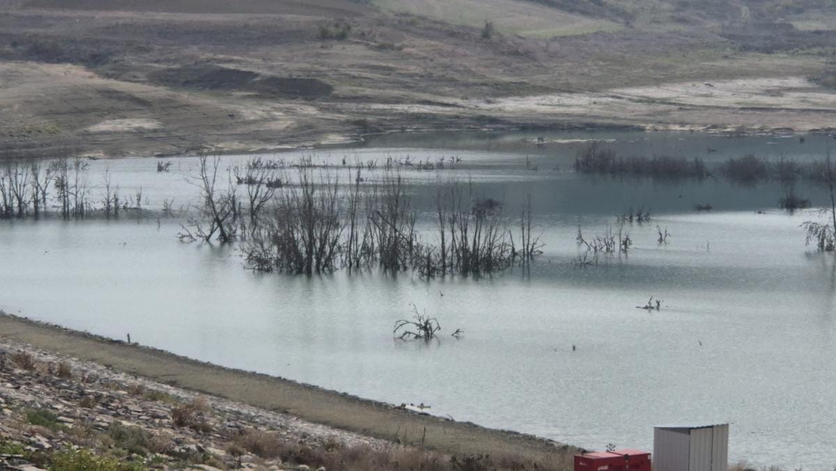Barajda suyun çekilmesiyle geniş alanlar kurudu, ağaç kökleri ortaya çıktı ve baraj gövdesi çevresinde küçük adacıklar oluştu.