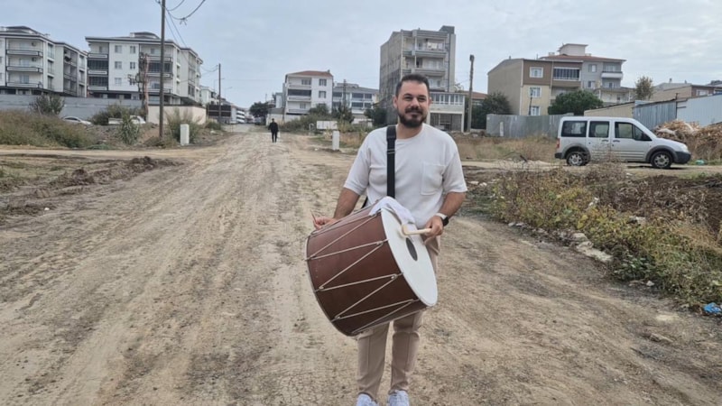 Ahmet Merih Çelik, davuluyla sokağa çıkarak yazdığı maniyi okuyup çaldı. Mani, “Tekirdağ canımız memleket, yağmur yağınca yollar oluyor felaket. Volkan başkanım duy sesimizi, yollar çamur kıyamet.” sözleriyle başladı ve mahallede dikkat çekti.