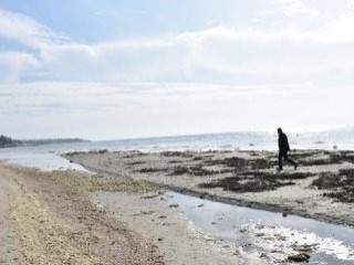 Marmara Ereğlisi İlçesine bağlı Yeniçiftlik Mahallesi'nde deniz suyu, kıyıdan 15 metre çekildi.