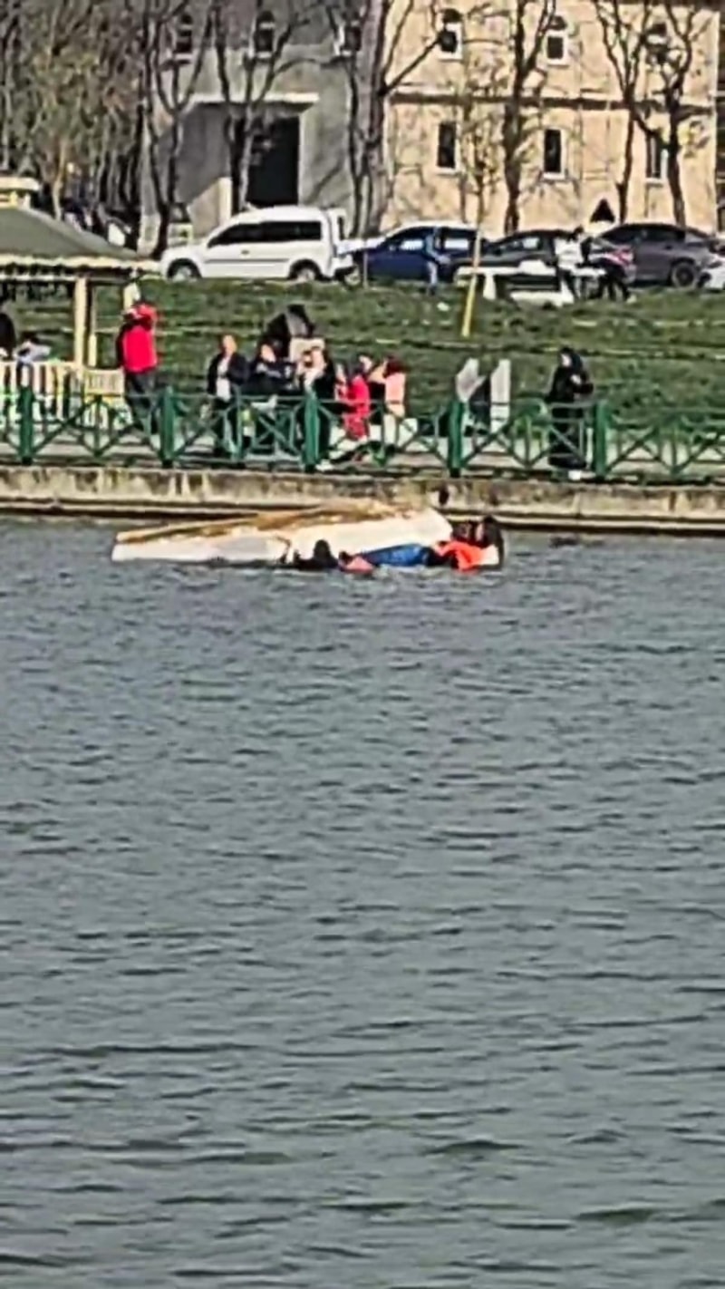 Tekirdağ'ın Kapaklı ilçesinde Kazak Gölü Mesire Alanı'nda 4 kişi, bindikleri deniz bisikletinin ters dönmesi sonucu göle düştü. Bir vatandaş tarafından kurtarılan kişilere sağlık ekipleri ambulansta müdahale etti.