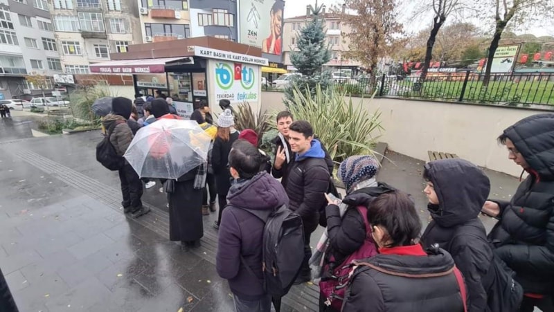 Tekirdağ'da yüzlerce öğrenci, kart dolum merkezinin önünde uzun kuyruklar oluşturdu. Toplu taşıma kartlarının güncellenmesi için kart dolum merkezinin önünde uzun kuyruk oluşturan öğrenciler, soğuk ve yağmurlu havaya aldırmadı.