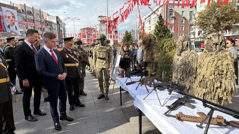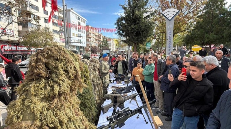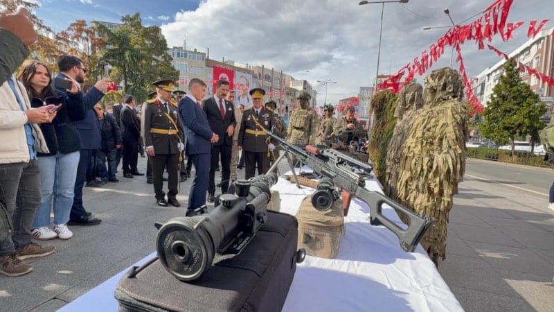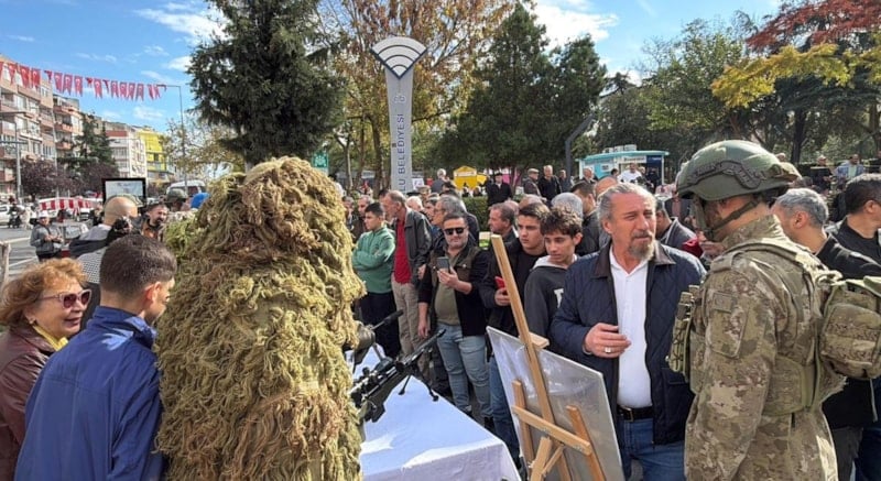 Törenin ardından Atatürk Meydanı’nda 41’inci Komando Tugay Komutanlığı tarafından silah ve teçhizat sergisi açıldı. Kamuflajlı komandoların da yer aldığı sergi, vatandaşlardan büyük ilgi gördü. Ziyaretçiler, sergiyi cep telefonlarıyla görüntülerken; Kaymakam Erten, Tümgeneral Aksoytürk, Tuğgeneral Hulusi Koçbay ve Cumhuriyet Başsavcısı Bilgehan Yücel de sergiyi gezerek bilgi aldı.