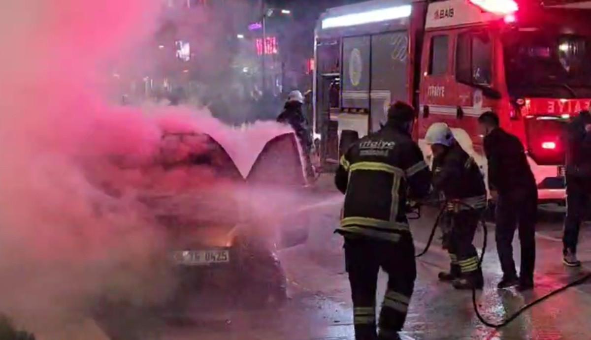 Sonrasında araç başına gelen ve aracını çalıştıran S.D., kontağı çevirdiği esnada büyük bir patlama duydu. Ardından araç yanmaya başlarken, sürücü hemen kendini dışarı attı.