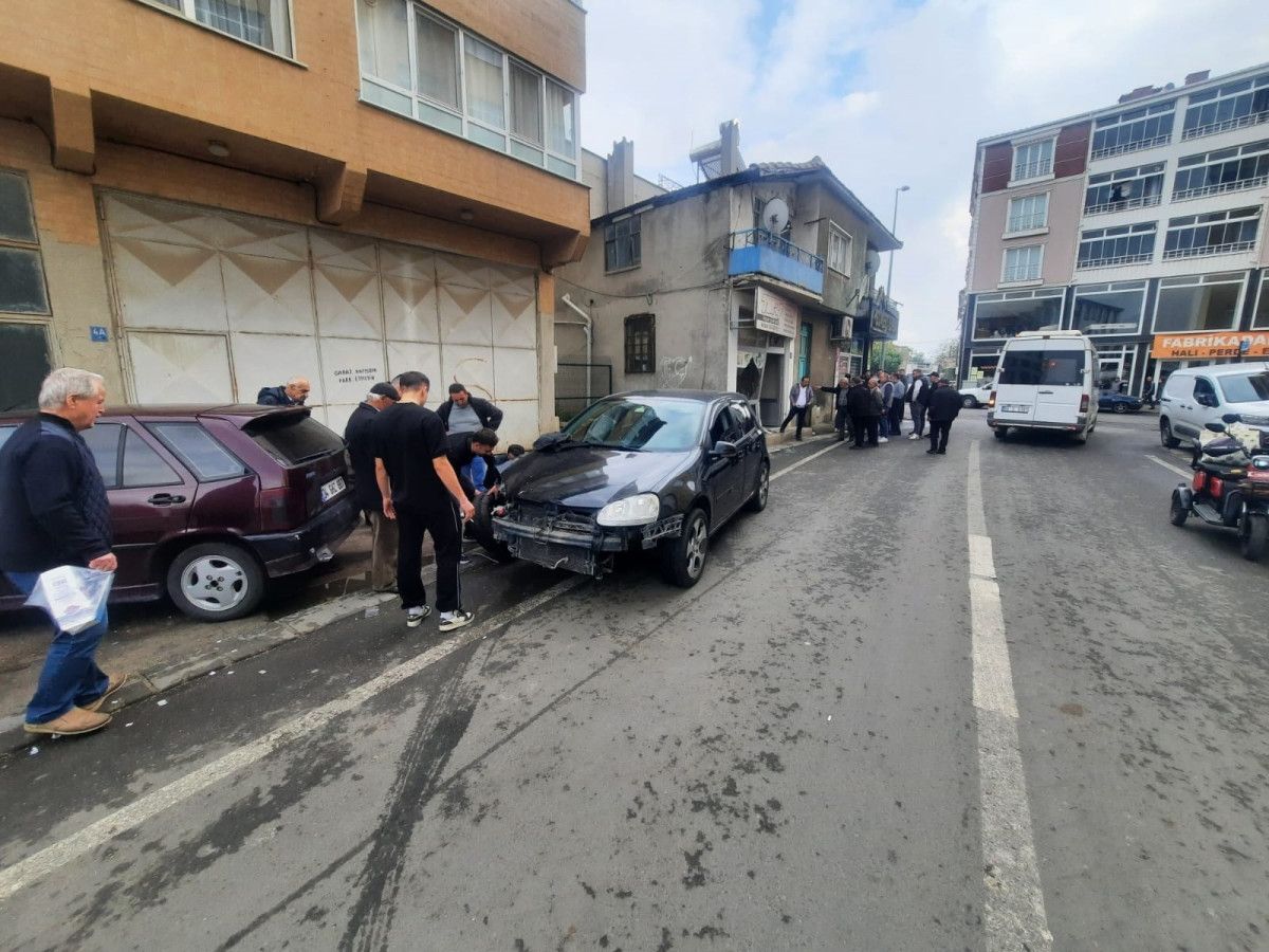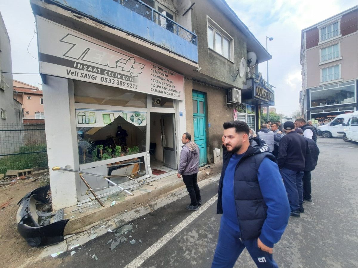 Çarpmanın etkisiyle araçta ve iş yerinde hasar oluşurken, çevredeki vatandaşlar büyük panik yaşadı.