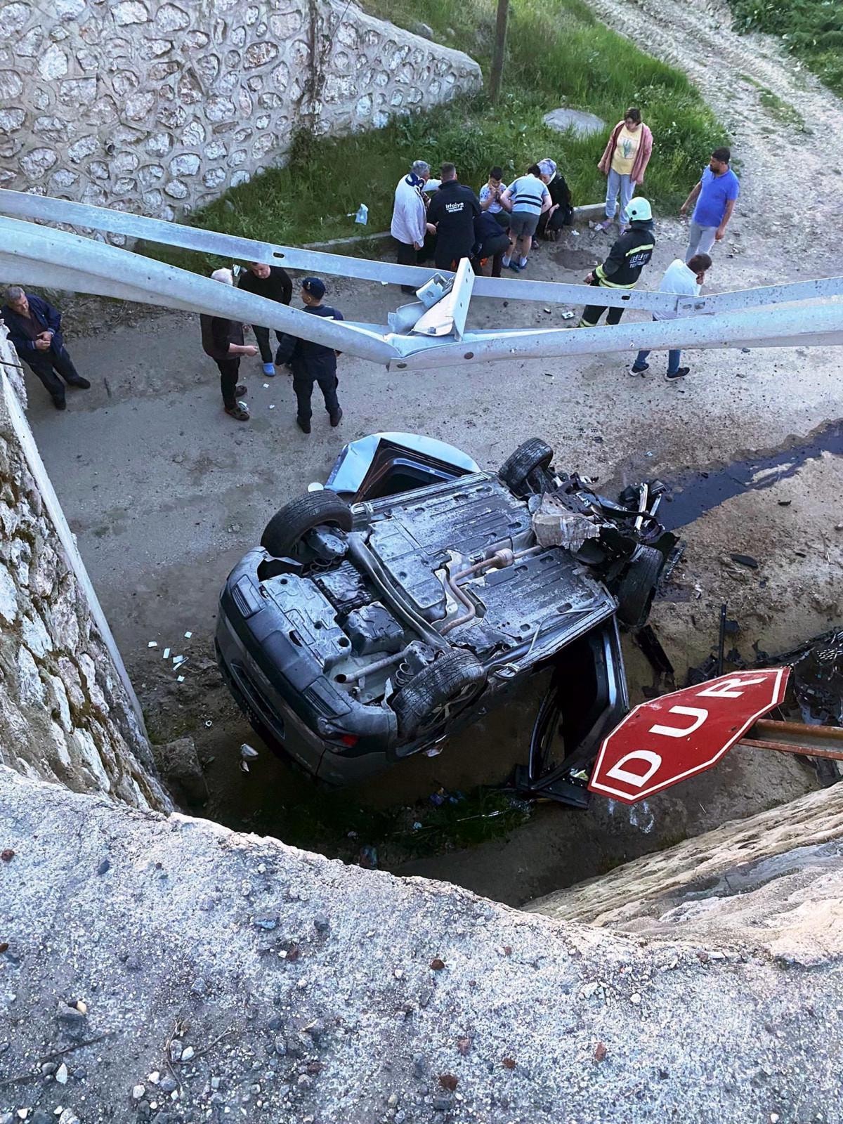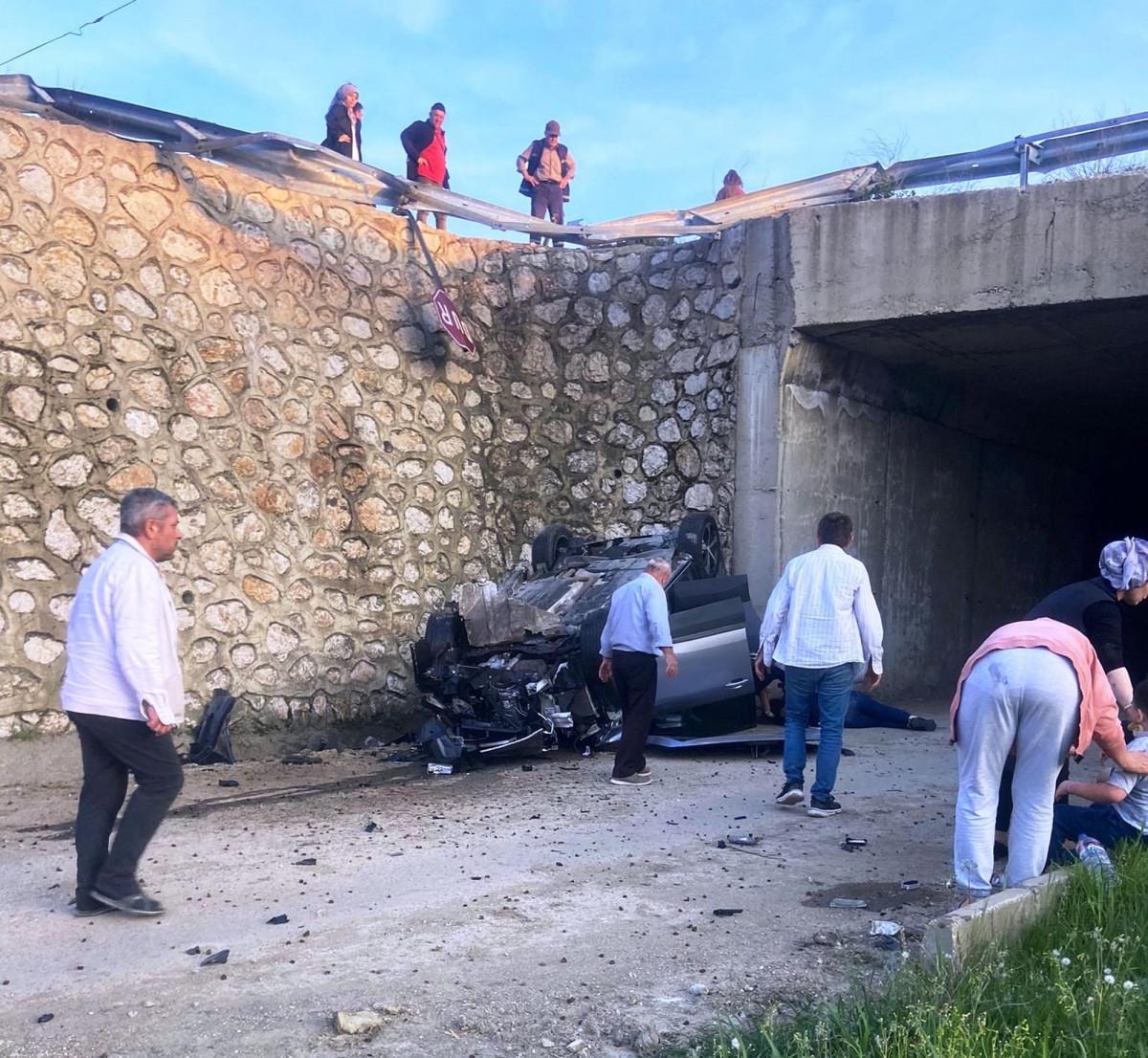 Çarpışmanın şiddetiyle savrulan Sebahattin G.’nin kullandığı otomobil yaklaşık 8 metre yükseklikteki köprüden düştü.