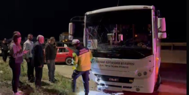 Tekirdağ’da Çerkezköy-Çorlu yan yolu üzerinde R.Y. yönetimindeki 59 M 8606 plakalı Tekirdağ Büyükşehir Belediyesi’ne ait yolcu minibüsü ile K.Ç. idaresindeki 34 TZ 2381 plakalı otomobil kafa kafaya çarpıştı.
